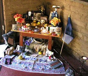 Altar y ofrendas en una vivienda rural.